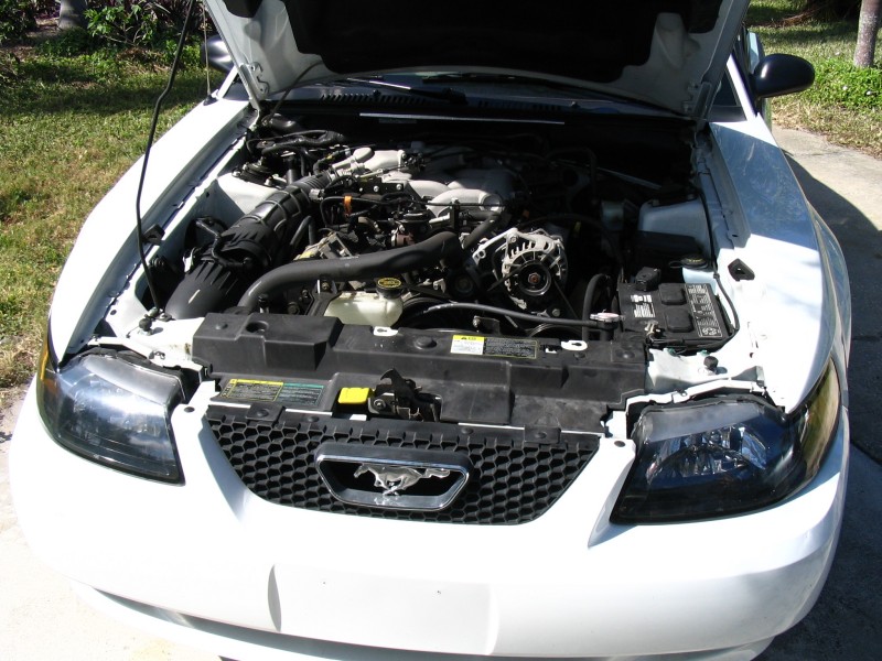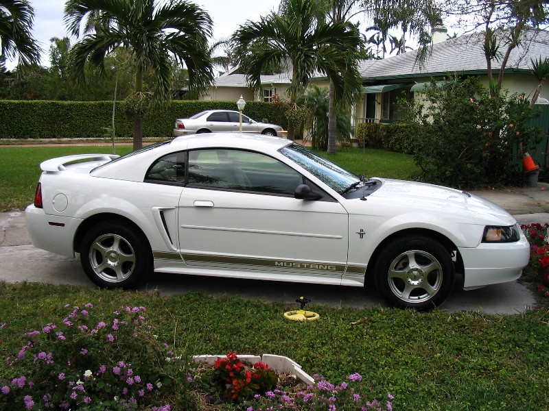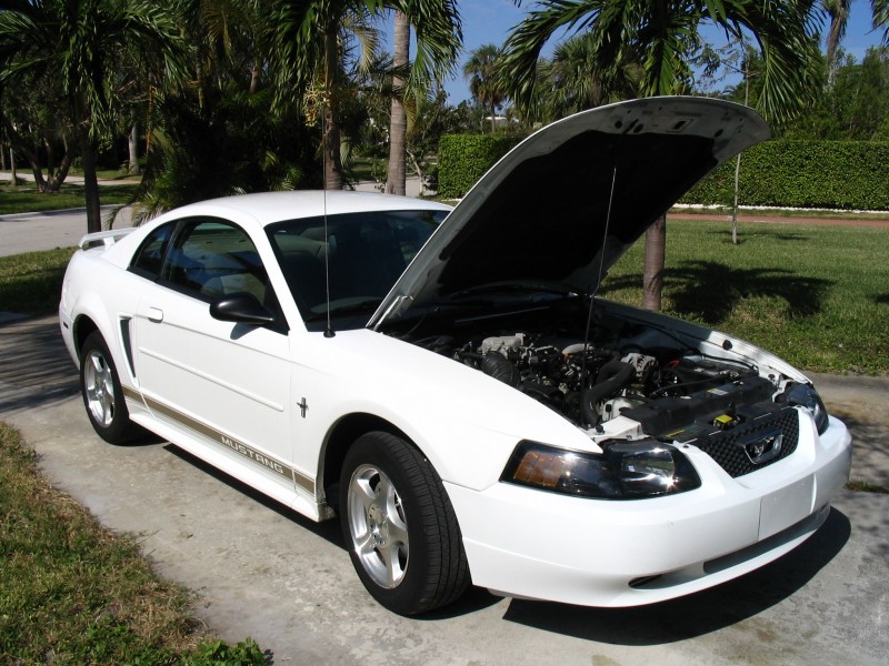 Kuvassa oleva Mustang on vuosimallia 2003 ja koneena on 3.8 litrainen V6. Auto rullasi tehtaalta ulos noin puolitoista vuotta sitten ja mittarilukema on vasta 20 000, joten valmistajan takuutakin on vielä noin puolet jäljellä. Musse on muutenkin kaikin puolin hyvin siistissä kunnossa (sisältä & ulkoa, sekä alta & konehuoneesta). Poneja tallissa on parisen sataa.